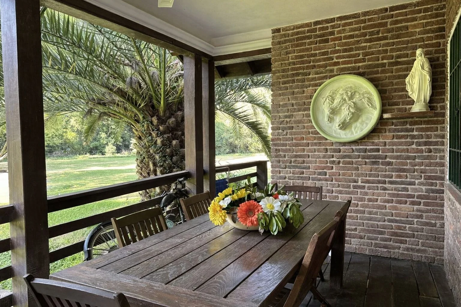 The covered gallery and multiple outdoor areas create seamless indoor–outdoor living — ideal for entertaining, quiet mornings, or long afternoons surrounded by nature.